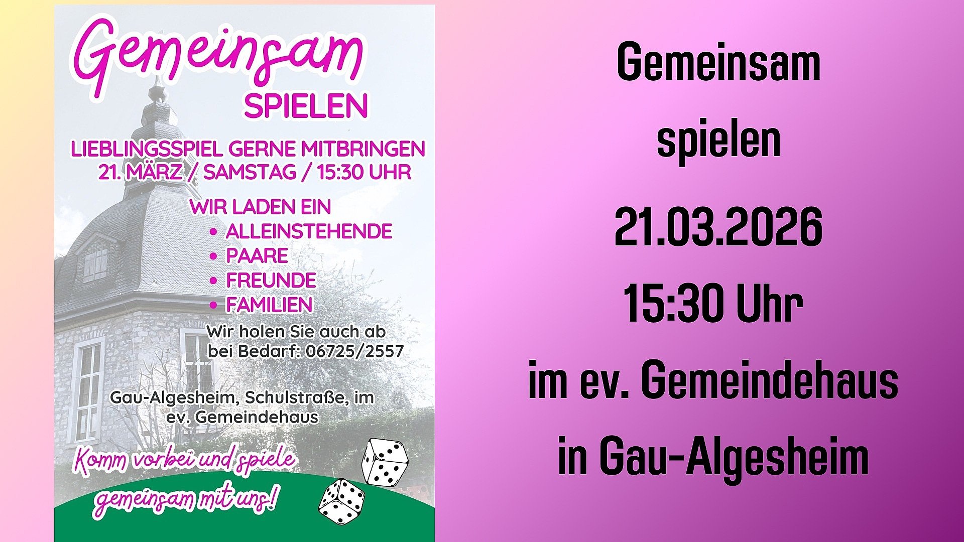 Evangelischer Gottesdienst am Abend Wir bitten Sie gerne um Rückmeldung, wie Ihnen der neue Gottesdiensttermin am Samstagabend gefällt.