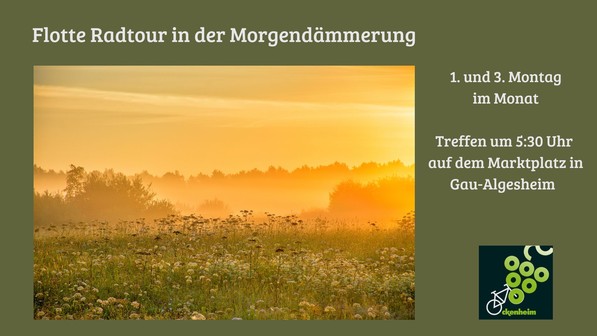 Komm mit auf die flotte Radtour in der Morgendämmerung