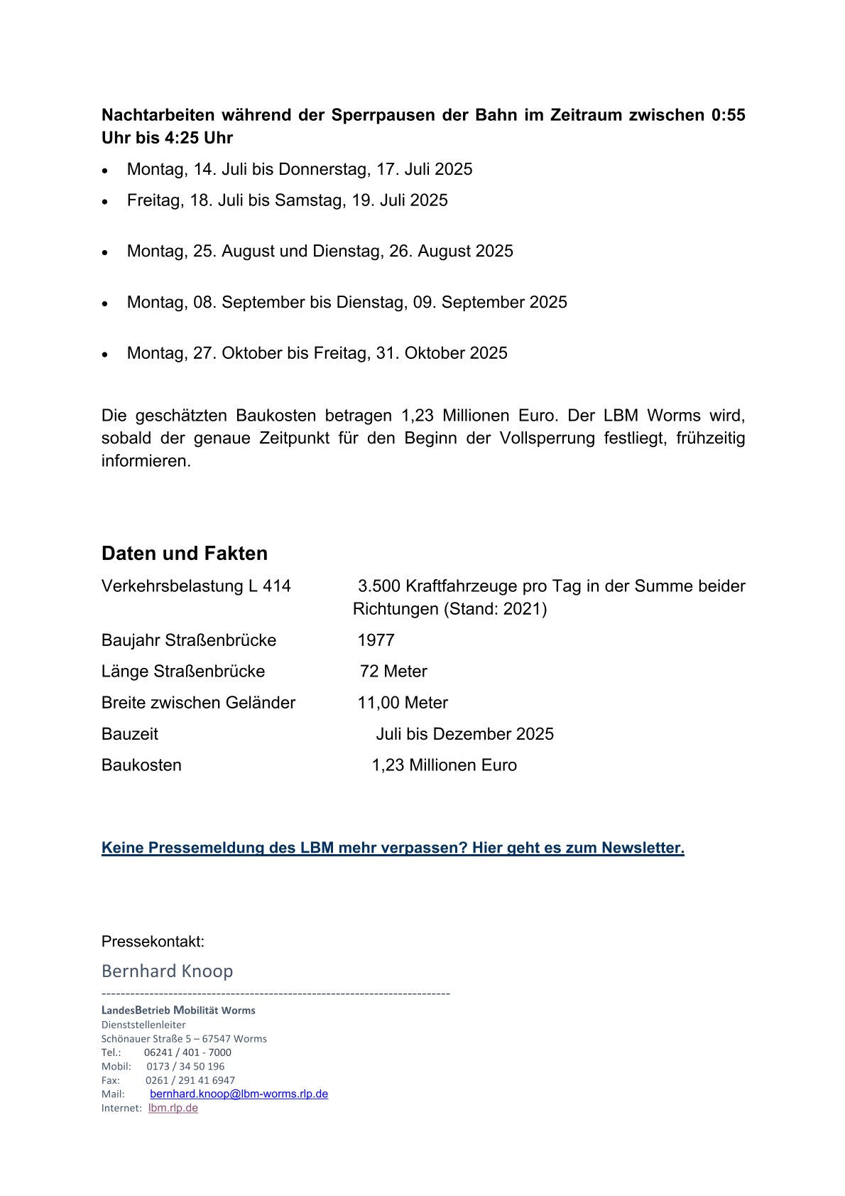 Der Landesbetrieb Mobilität (LBM) Worms informiert: