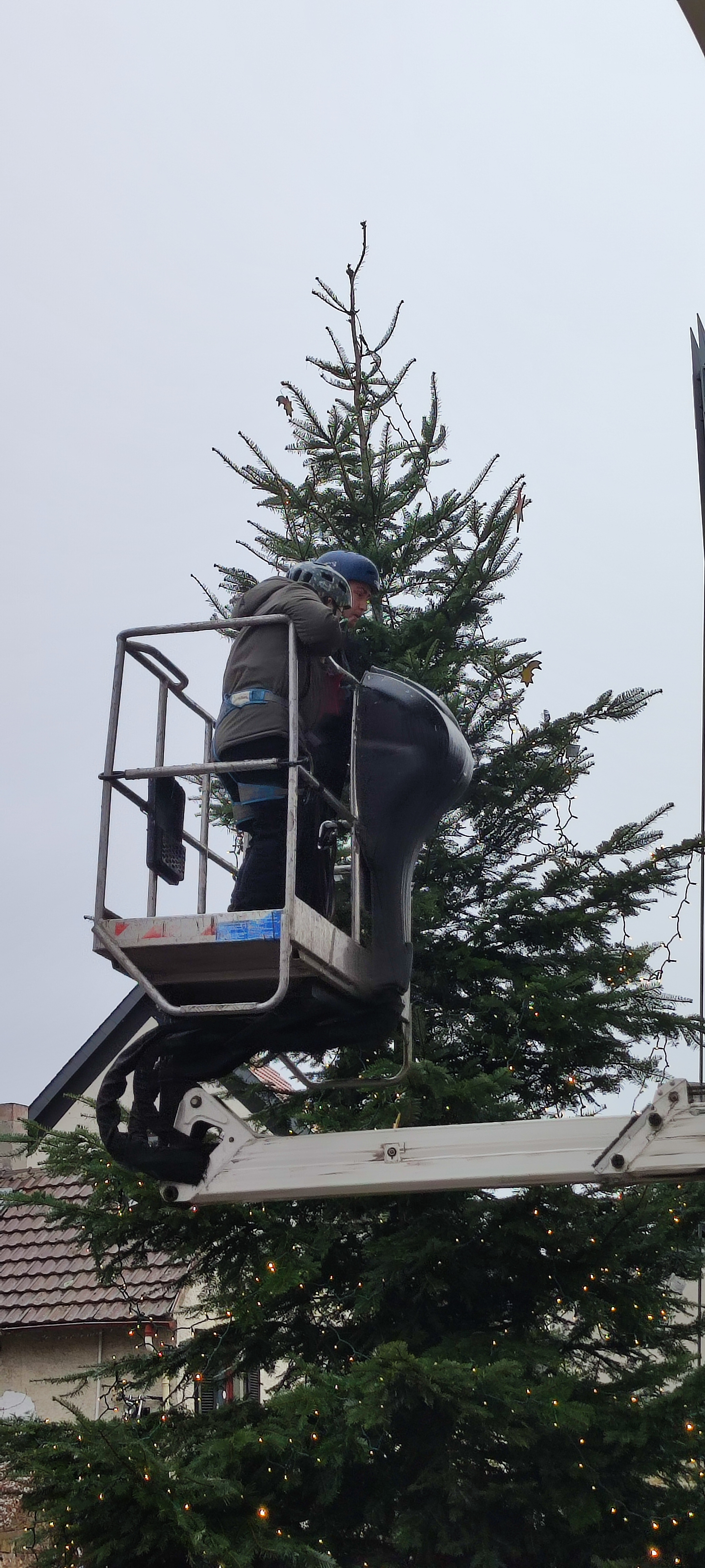 den helfenden Händen beim Anlegen der Gurte und Helme sowie Ausgabe des Weihnachtsbaumschmucks,