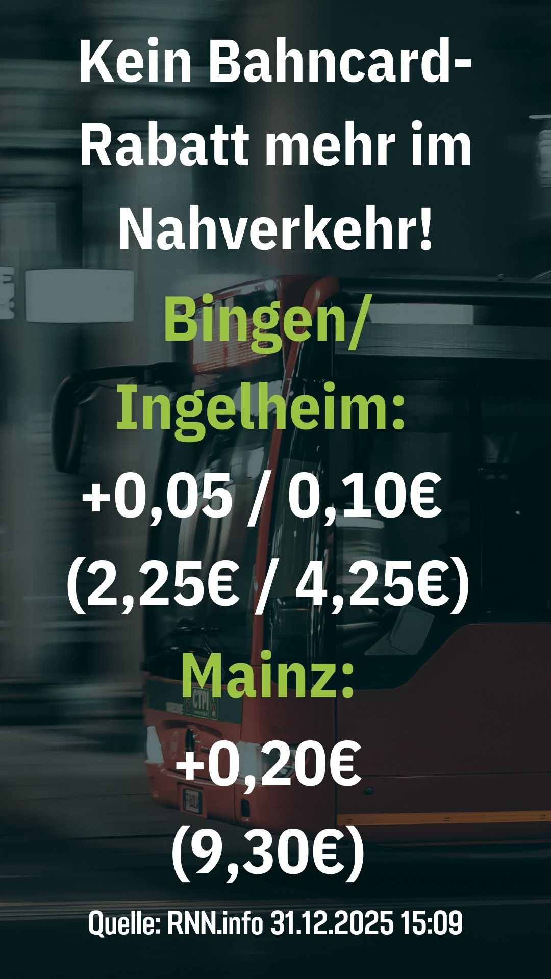 Kein BahnCard Rabatt mehr im Nahverkehr des RNN