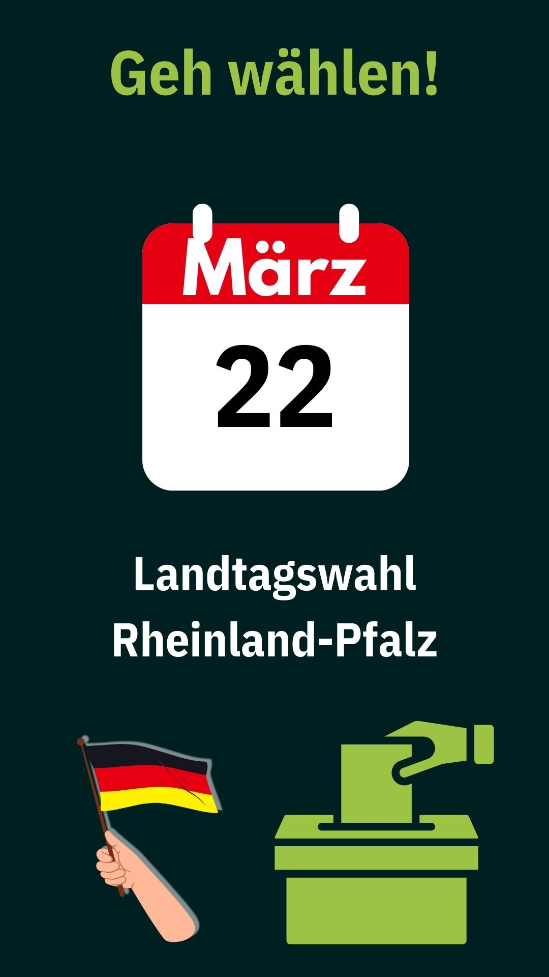 Demokratie lebt vom Mitmachen. Wer demokratisch wählen geht, gestaltet mit – ganz egal auf welcher Ebene. Am 22. März 2026 findet die Landtagswahl in Rheinland-Pfalz statt. Also: Termin vormerken und unbedingt wählen gehen!