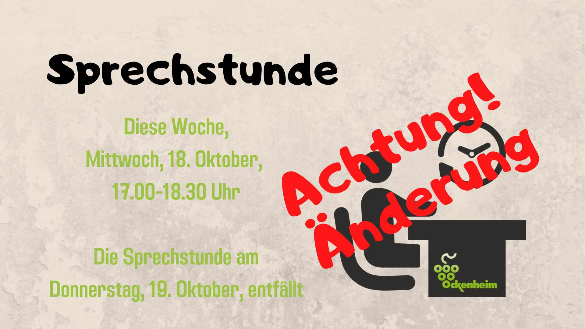 Achtung: Sprechstunde am Mittwoch